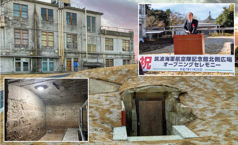 筑波海軍航空隊の旧指令部庁舎の北側の草むらに戦後80年間埋もれていた地下無線室跡を、県、市、同航空隊記念館の皆様が、発見、発掘して、見学できるようにしてくれました。是非、ご覧ください。(令和7年11月26日)