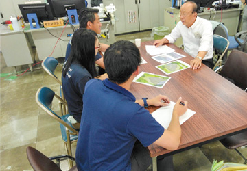 | 高萩スカウトフィールドで開催されたボーイスカウトキャンポリーにて。笠間第一団出身のローバースカウト※の方(左)と。(R7.8.12) ※18〜25歳のスカウトで社会貢献事業活動を行う。 |